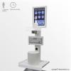 Hi quality robust stand alone station for dispensing hand sanitiser. Designed to be portable, yet industrial for use in public places of high footfall. Large footprint is used for semi permanent dispensing of hand gel and supplied with dispenser for gloves and integral bin for waste product.