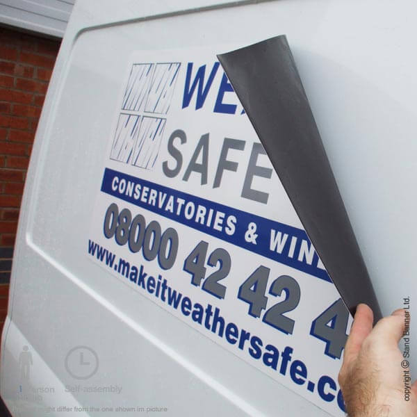 Stand banner understand that there are many small companies that use they're own personal vehicles for work and business, companies like Hairdressers, Driving Instructors, Painters, Plasterers, Plumbers and even Taxi Cabs. We provide a wide array of commercial branding and graphics for every size company no matter what they're business needs. Printed vehicle graphics provide a convenient solution for advertising your business on the fly. Magnetic graphics can be printed with all your company details including photographs phone numbers and business service details and even your company logo.