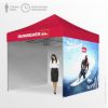 Stand Banner provides an extremely strong, durable, lightweight, aluminium printed gazebo for outdoor exhibitions and events. Custom-printed gazebos are ideal for charity events, sports clubs, fairs, festivals and many other outdoor functions. They are supplied with single sided printed graphics on three walls, plus the option to include a printed front opening. The canopy and valance is also printed with your design.