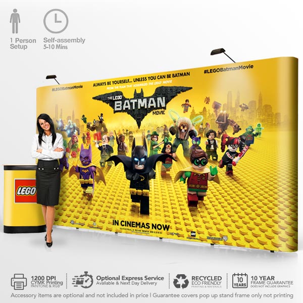 Designed for frequent use, the 3x5 pop up stand combines a lightweight yet sturdy aluminium frame with magnetic graphic panels for a seamless, professional finish. Tool-free assembly allows setup in minutes, and the compact, portable system is easy to transport and store. Interchangeable graphics let you update branding effortlessly, while a 10-year manufacturer’s hardware warranty ensures long-term reliability and peace of mind.