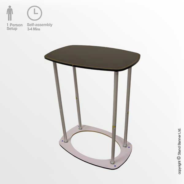 Our promotional pop up counter is a unique item that requires no complicated assembly and no tools to construct. Its one-touch system ensures quick and easy setup in a little as 10 seconds. With a single press, the counter 'pops up' into shape for instant use. With a vibrant, washable textile graphic wrap, this counter can be used time and time again. It comes with a convenient carry bag to allow for easy transit and storage; plus, it has a 5-year warranty on hardware. For more information contact Stand banner.